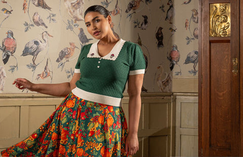 Ik had er een oranje petticoat bij aan en dat stond top. (Er zit oranje in de kleine bloemetjes).