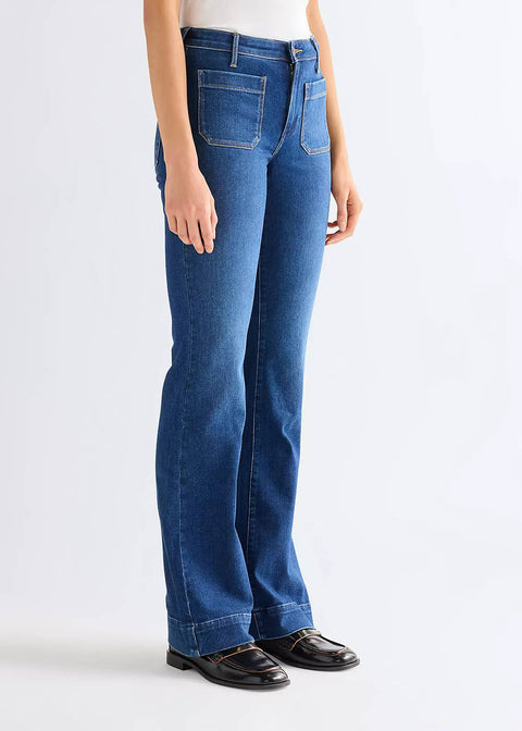 From ranch to festival - these Wrangler flare jeans effortlessly bring the 60s & 70s to life! The mid-rise waist and elegantly flared legs create a feminine, flattering silhouette with a subtle retro vibe. The soft denim is comfortable to wear and feels instantly familiar – just what you expect from a true Wrangler! A pair of jeans with character, perfect for those who love style with a touch of freedom. 🌼